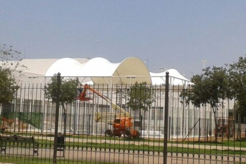 This stunning 25 x 35 meter cover, with a height of 10 meters, was designed to cover a sports centre in Boadilla del Monte, Madrid. The structure is formed of anodized aluminium arches and a tent-kedder system tensing the membrane along the structure and anchorage plates providing tension from the membrane to the base of … Continue reading