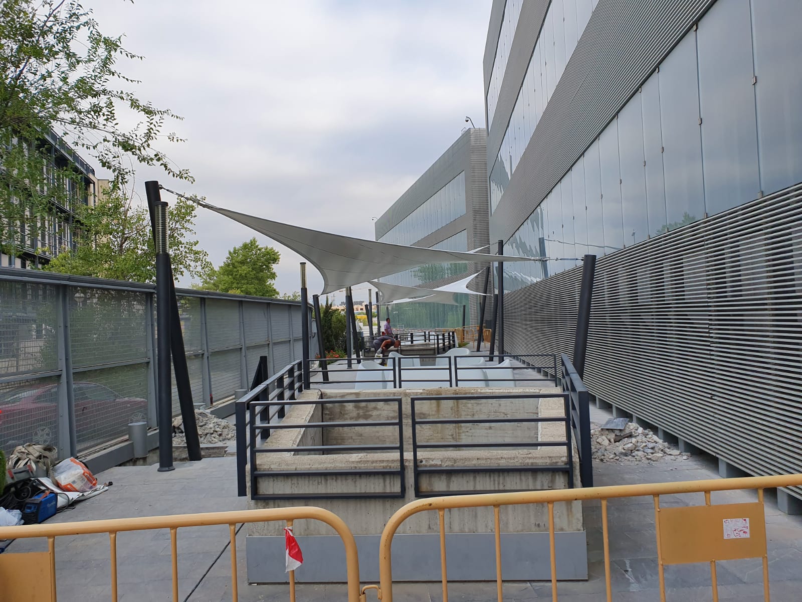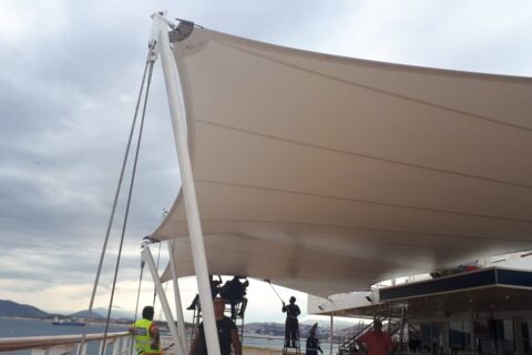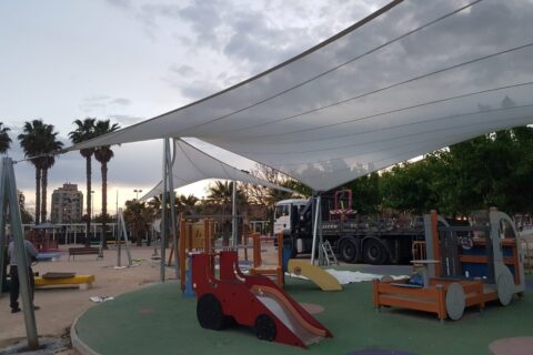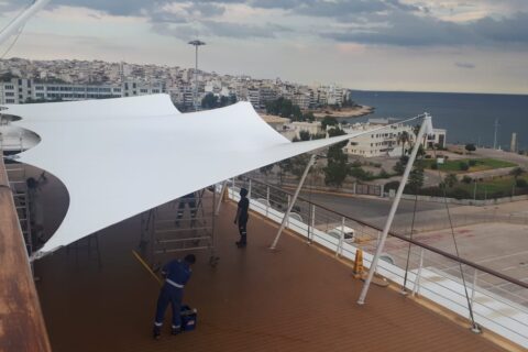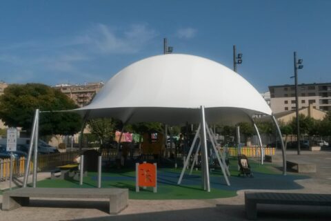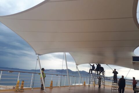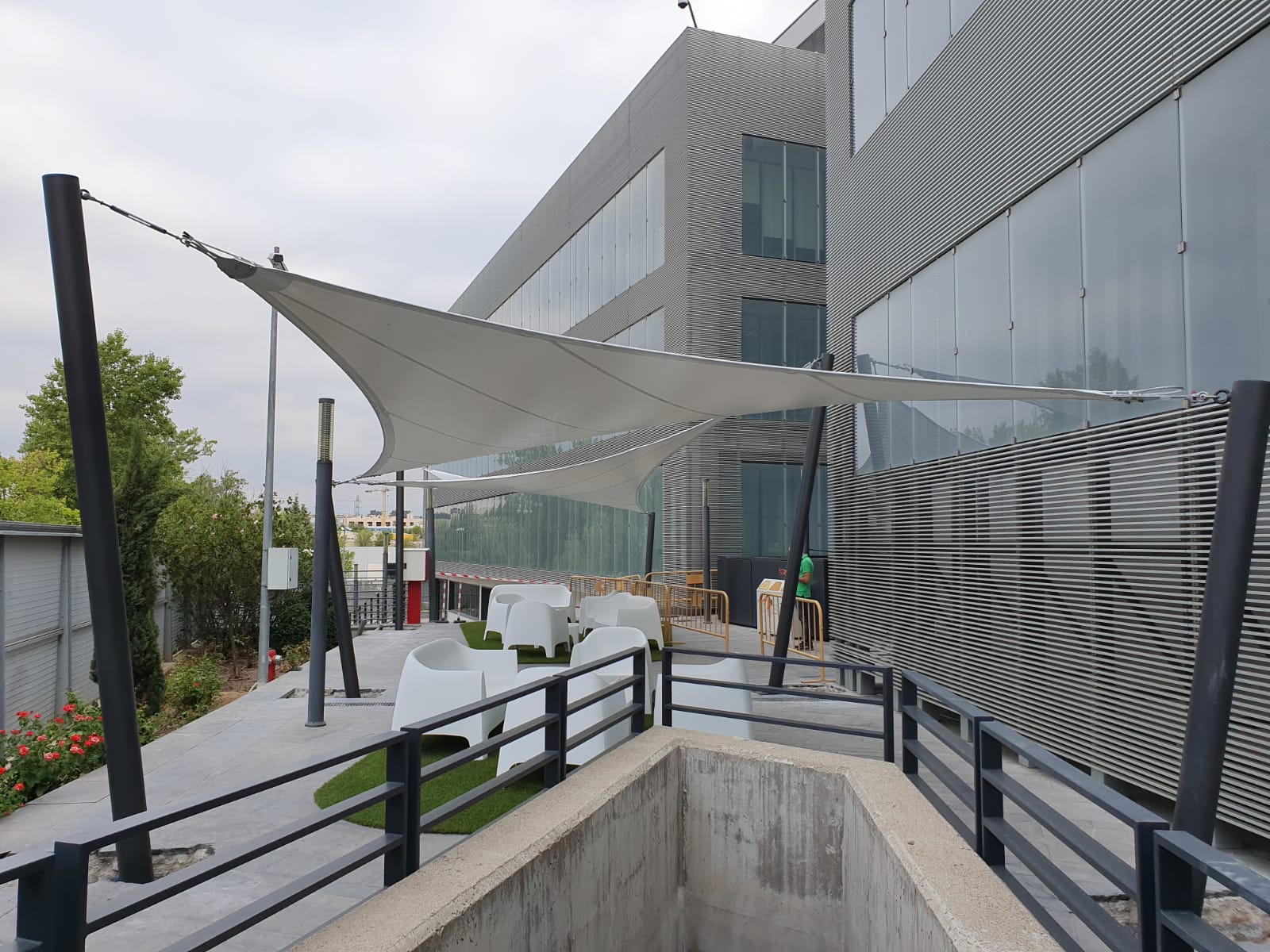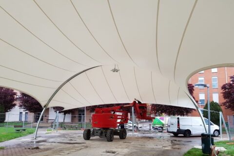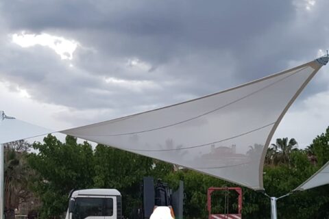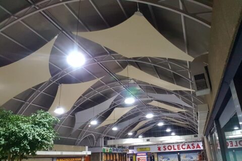 Design, manufacture and installation of a textile façade of 8m height by 58m length, made of PVC Mesh for an office building in Madrid. The objective was to modernize the look of the building by means of an architectural remodelling. This exterior layer provides UV protection in the summer and shields from cold wind in … Continue reading