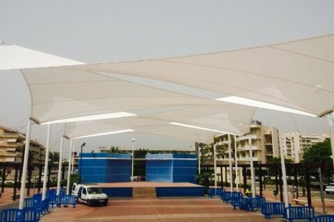 Manufacture and installation of 12 20m2 tensed paraboloid membranes and a central 44 m2 one, in white and blue. Architect: Ignacio Sánchez González Engineer: Gustavo Ramírez Lares Project Execution: Uxcar 97, S.L. Location: Parada autobuses de Nerja, Málaga Date: … Continue reading