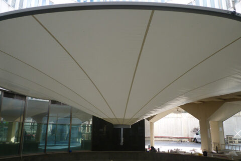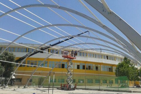 This stunning 25 x 35 meter cover, with a height of 10 meters, was designed to cover a sports centre in Boadilla del Monte, Madrid. The structure is formed of anodized aluminium arches and a tent-kedder system tensing the membrane along the structure and anchorage plates providing tension from the membrane to the base of … Continue reading